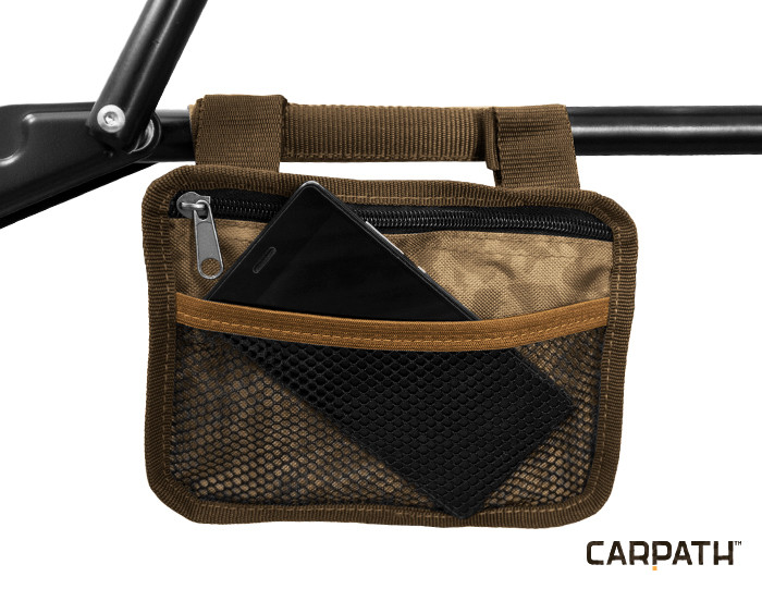A széknek új szintet ad az UNIQ Bag táska (20x15cm), mely az előkészített csatlakozókon van rögzítve, mely a csomagolás részét képezi. Ebben a táskában kényelmesen tárolhassa iratait és mobilját. Az univerzális tépőzárnak köszönhetően könnyedén felakaszthatja az övére, vagy a horgászágy szerkezetére, hogy mindig kéznél legyen.